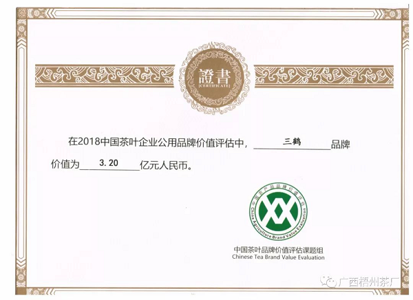 喜訊 |“三鶴”六堡茶品牌價(jià)值升至3.2億元